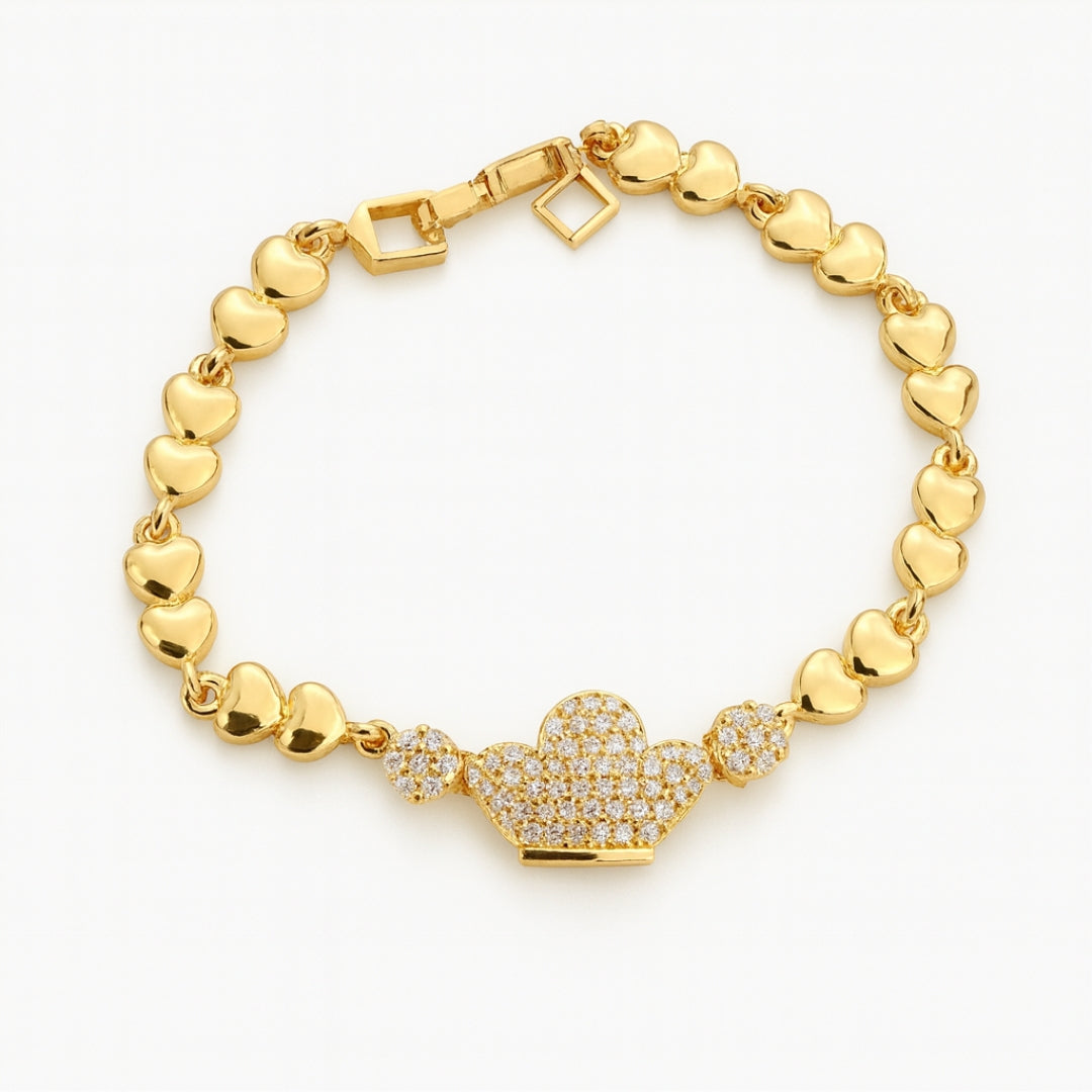 Elegant gold-tone bracelet with sparkling heart centerpiece